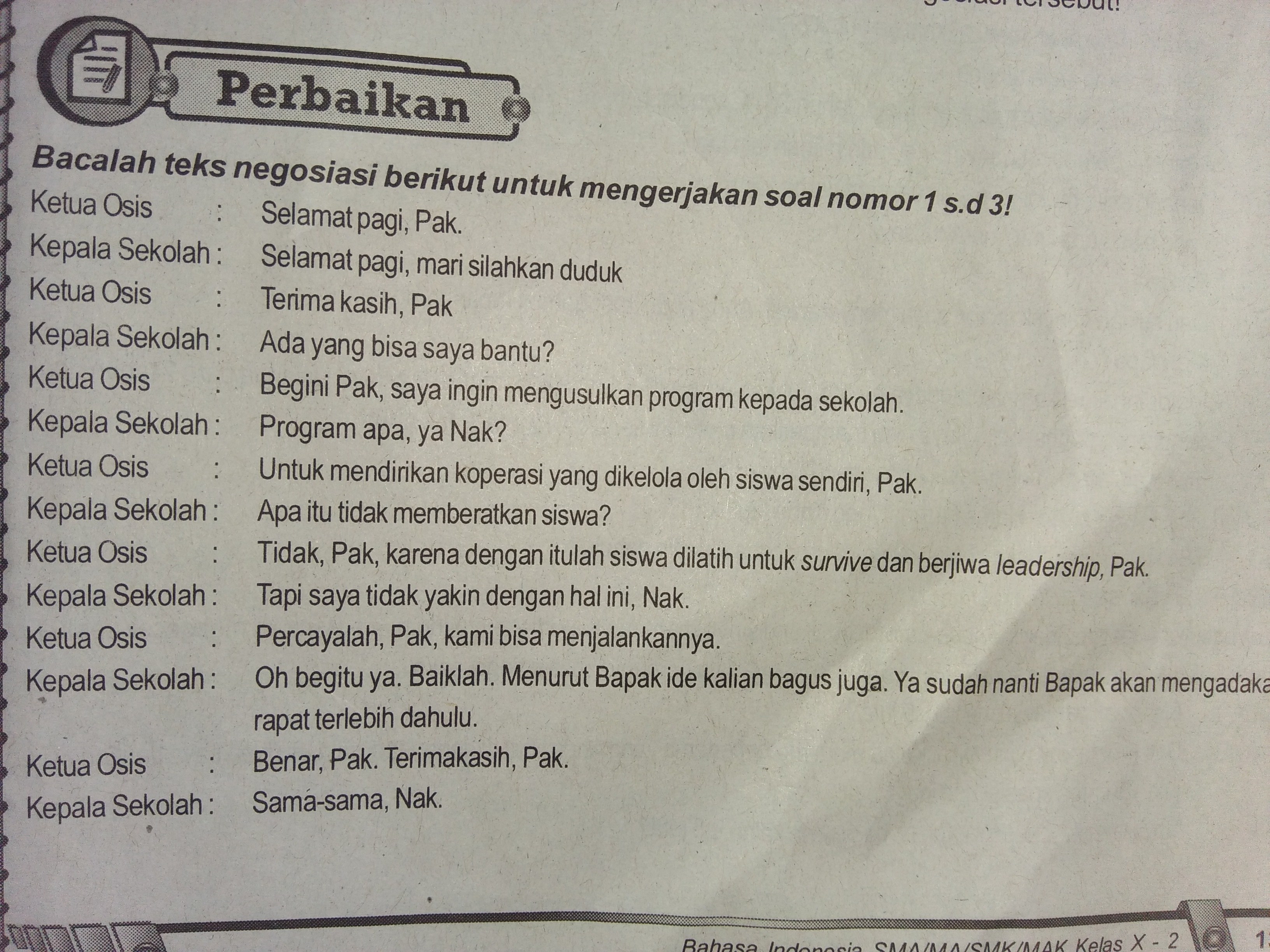 Berapa jumlah uang yang anda butuhkan untuk mengembangkan usaha anda? Saya ingin mengajukan proposal peminjaman uang". Siswa mampu menganalisis kaidah kebahasaan teks negosiasi. Dapat berupa negosiasi dan mediasi dan konsiliasi. Uang yang di pinjamnya dari si pemberi pinjaman.