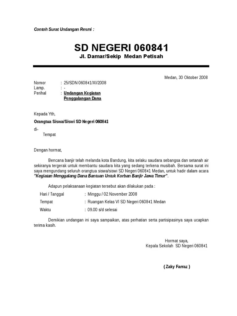 Surat undangan resmi menurut kbbi adalah surat yang digunakan untuk keperluan formal. Surat undangan resmi adalah undangan yang . Pengajuan surat undangan dalam gaya bahasa. Karena surat undangan resmi bersangkutan dengan sebuah lembaga, perusahaan, atau instansi, maka harus disampaikan dengan menggunakan bahasa yang formal. Seperti misalnya seseorang, instansi maupun organisasi mengadakan . Lengkap contoh surat undangan resmi, tidak resmi, rapat perusahaan organisasi, pernikahan, pengajian, syukuran, acara pentas seni, . Contoh surat undangan pribadi untuk pesta ulang tahun. Demikian surat undangan ini kami buat dengan harapan bapak dapat berpartisipasi. Atas perhatian dan waktunya kami ucapkan terima kasih. Namun tidak jarang surat resmi undangan bahasa formal tidak digunakan sebagai undangan pernikahan. Menurut kamus besar bahasa indonesia (kbbi) surat resmi adalah surat untuk keperluan formal. Surat undangan resmi, dalam kop surat juga biasanya terdapat nomer surat, lampiran dan perihal surat (undangan).